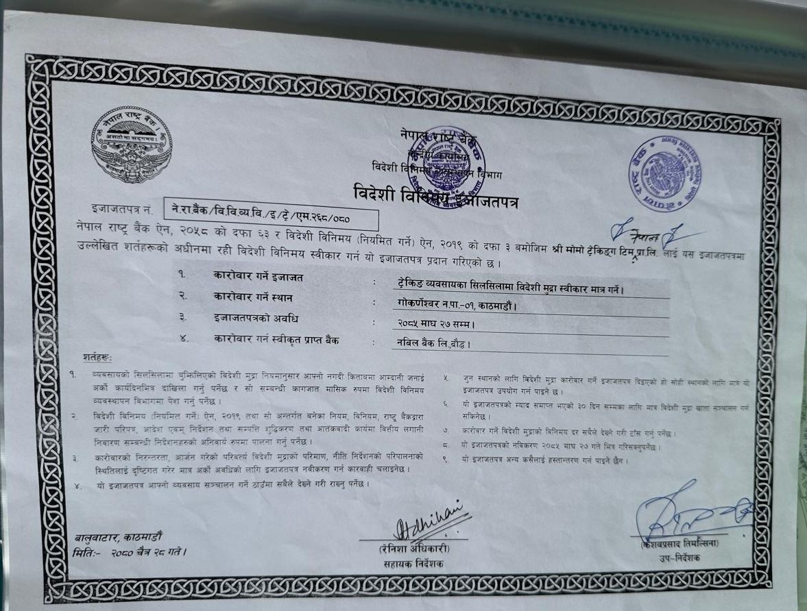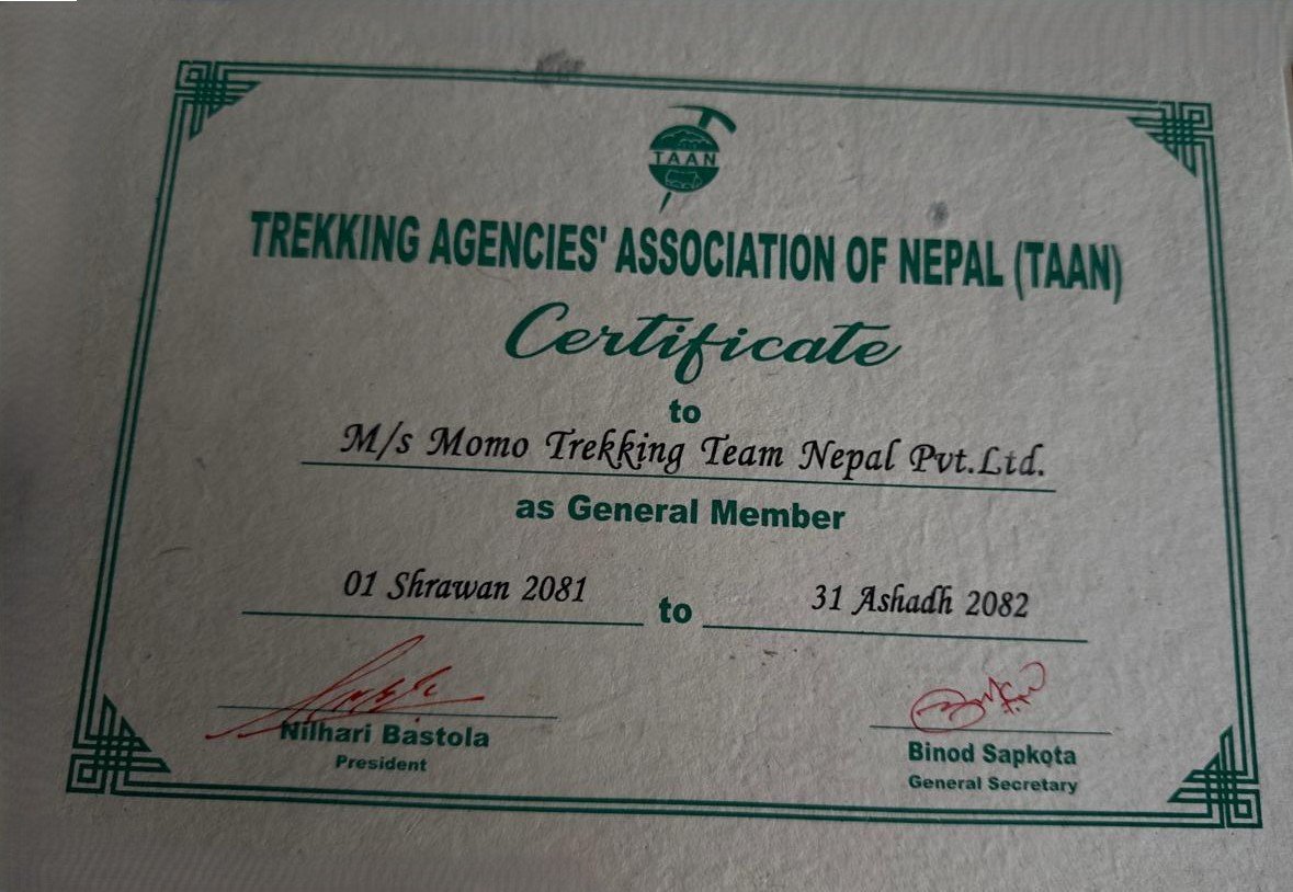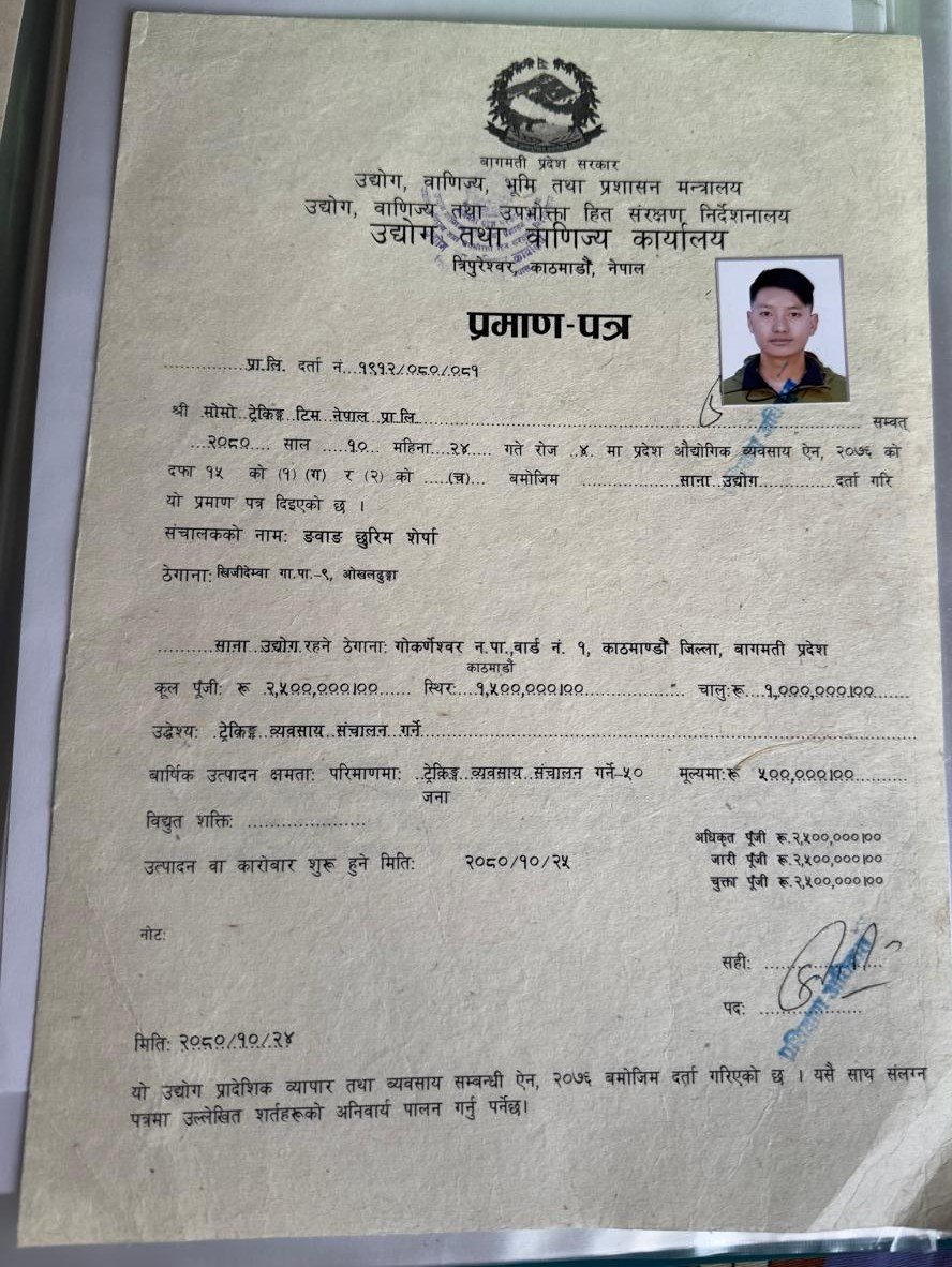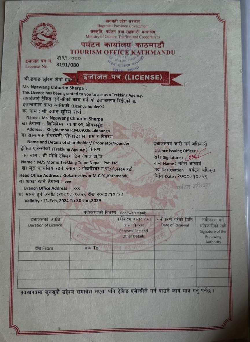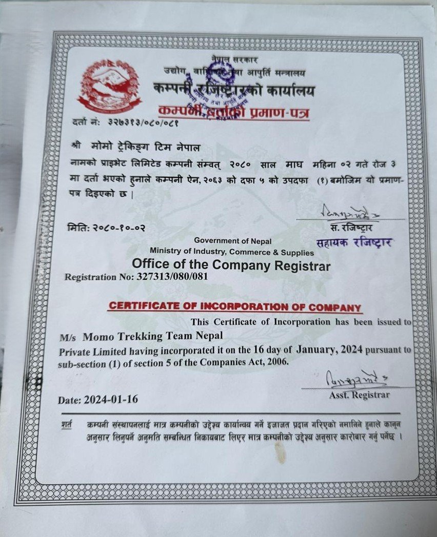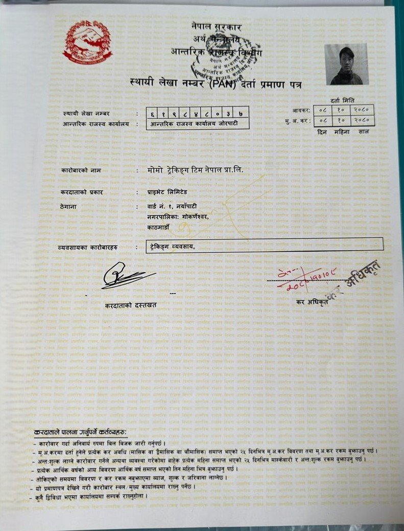 Government Registered No: 327313/080/081 Tourism Licence No: 3191/090